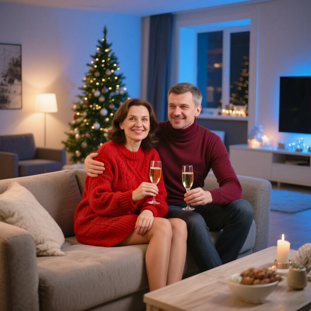 К вечеру квартира наполнилась запахом салатов и запеченной курицы. Лена накрыла стол, переоделась в праздничное платье — больше по привычке, чем от желания. Включила телевизор с традиционной новогодней программой. Села в кресло и уставилась в экран, не видя ничего.