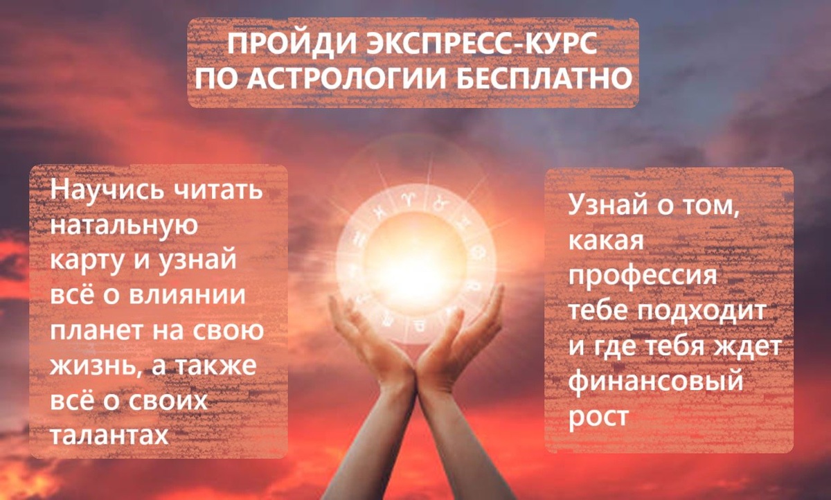 ❤️ Друзья, я подготовила для вас уникальный ✨ БЕСПЛАТНЫЙ ЭКСПРЕСС-КУРС ПО АСТРОЛОГИИ “АСТРОНАВИГАТОР”. И сейчас я приглашаю вас пройти данный экспресс-курс в удобном для вас формате абсолютно бесплатно! Такая возможность есть только у подписчиков моего канала! 🌟НА ДАННОМ ЭКСПРЕСС-КУРСЕ ВЫ: ✅ Построите свою натальную карту; ✅ Узнаете об аспектах натальной карты и влиянии всех планет на вашу личность; ✅ Разберетесь в своем характере, талантах, потенциале, в чем ваша уникальность, поймете свои сильные и слабые стороны, а также - что будет способствовать вашему развитию, а что - тормозить; ✅ Узнаете, какая профессия вам подходит по звездам и где вас ждет финансовый рост; ✅ Разберетесь, что мешает вам зарабатывать больше, где скрыты ваши деньги и в чем ваша уникальная суперспособность; Данный экспресс-курс рассчитан на людей, которые не имеют знаний и навыков по классической астрологии. Также курс будет интересен и полезен для людей, которые имеют некоторые базовые знания по классическ