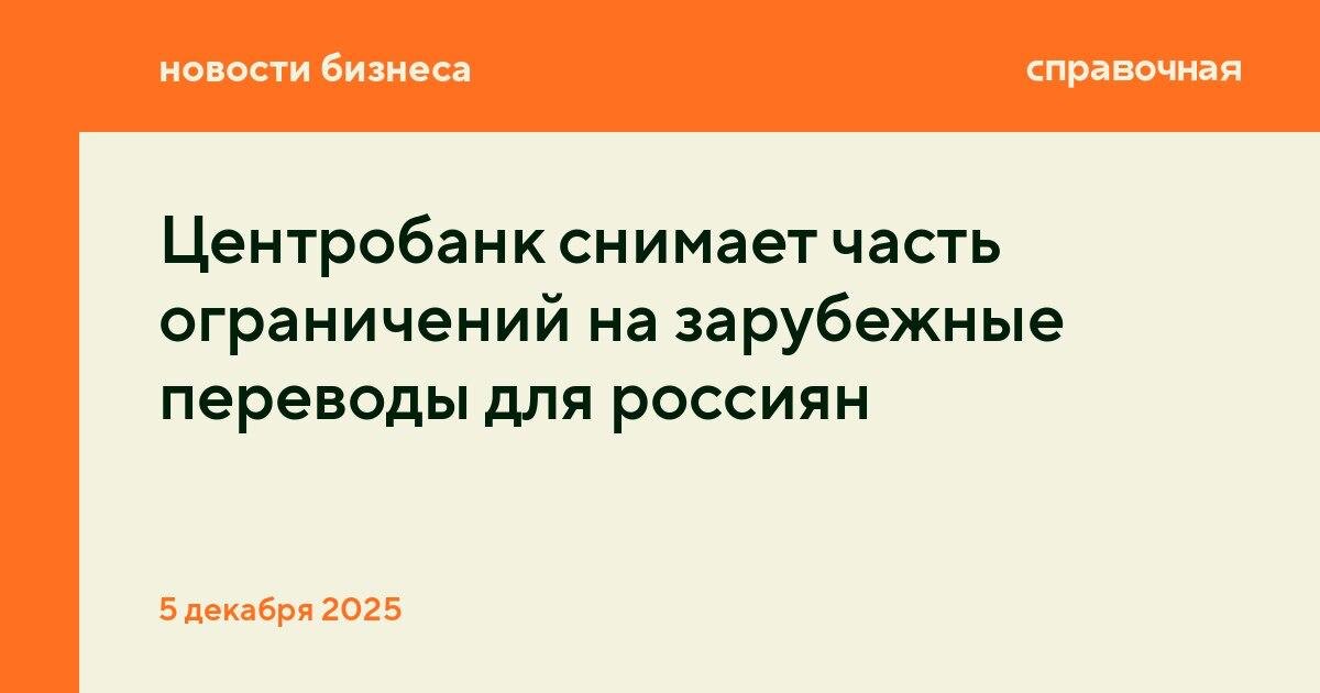 💷 Центробанк снимает часть ограничений на зарубежные переводы для россиян
