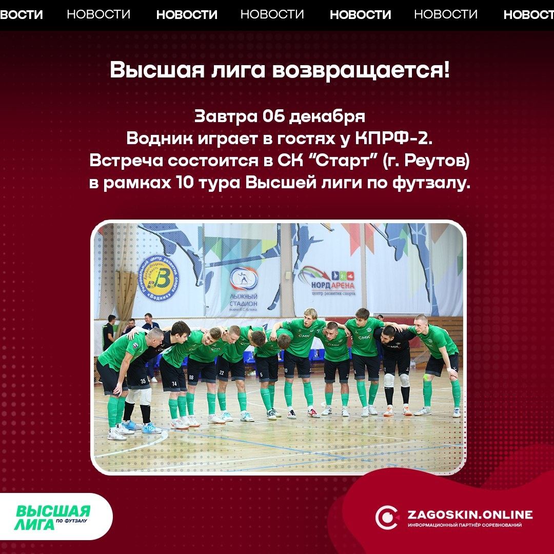 🏆 Завтра Водник сыграет с КПРФ-2 в рамках 10 тура Высшей лиги по футзалу. Встреча пройдёт в СК "Старт" г. Реутов. #новости #zagoskin_online #футзал #высшаялига #сезон25_26