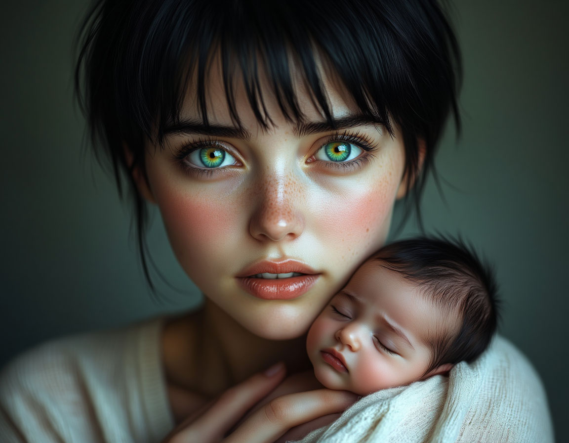 Дмитрий замер. Его взгляд прилип к маленькому личику. Он увидел те самые, свои черты, ещё более отчётливо, чем на фото. Увидел его крошечные пальчики, его тёмные волосики. И увидел, как ребёнок, почувствовав знакомые руки и запах матери, успокоился, открыл глаза — тёмные, неосознанные, но уже такие живые. Его сын.