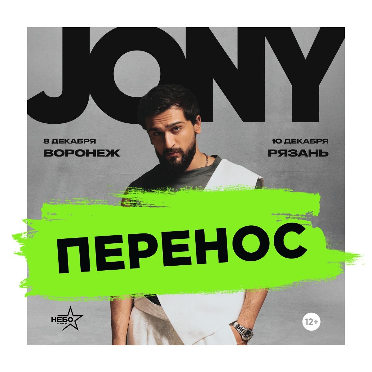 Уважаемые зрители! По техническим причинам концерты JONY в Воронеже и Рязани, которые должны были состояться 8 и 10 декабря, переносятся. В ближайшее время будут объявлены новые даты. Все билеты действительны на новую дату, а также являются возвратными, обменивать их не нужно. Для дополнительной информации ticket@neborecords.ru