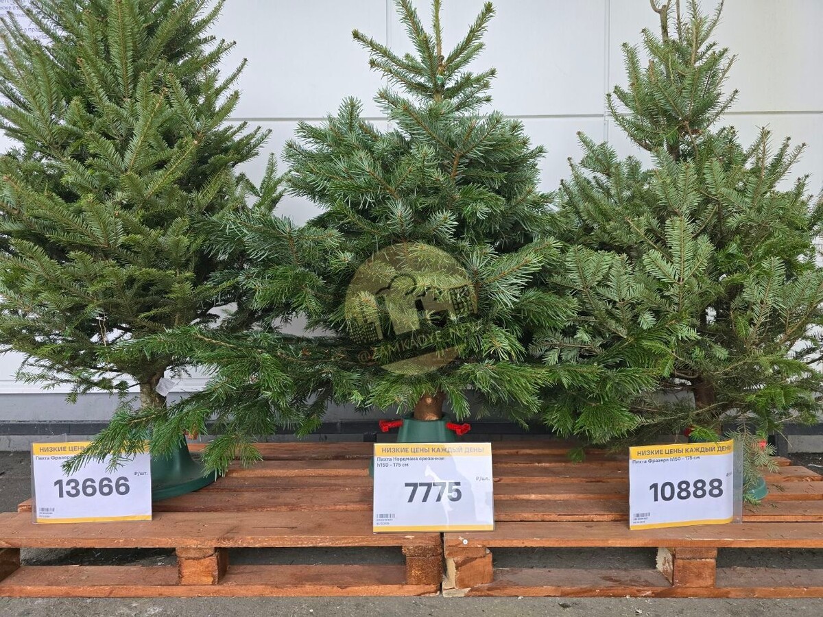 В Лемана Про Мытищи уже завезли живые пихты. Цены на фото.