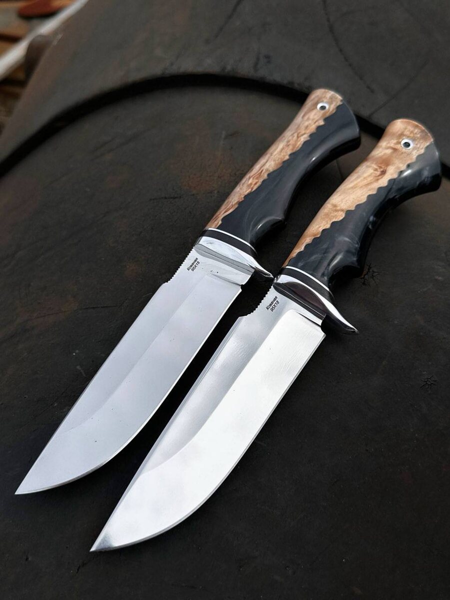 Надежный рабочий нож из нержавеющей стали 95х18 Идеальный выбор для охоты, рыбалки, туризма или хозяйственных задач. Клинок с твердостью 58 HRC и спусками от середины — выдержит серьёзные нагрузки и долго держит заточку. Режет как бритва! Рукоять — настоящее произведение искусства: гибрид стабилизированной карельской берёзы янтарь и чёрного акрила. Красиво, удобно, надежно. В комплекте — ножны из натуральной кожи. По желанию изготовим формованные ножны (+8000 руб). Цена: ~9640 руб, цена: 7.740 руб по акции! Заказ и подробности — пишите в @Nazarklinokbot или на WhatsApp/Viber +79101343831