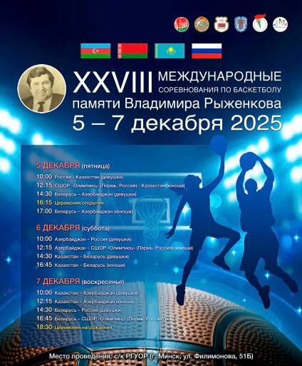 5– 7 декабря в Минске пройдут XXVIII Международные соревнования по баскетболу памяти Владимира Рыженкова