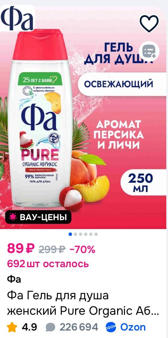 Фа Гель для душа женский Pure Organic Абрикос, 250 мл - 1 шт по этой цене