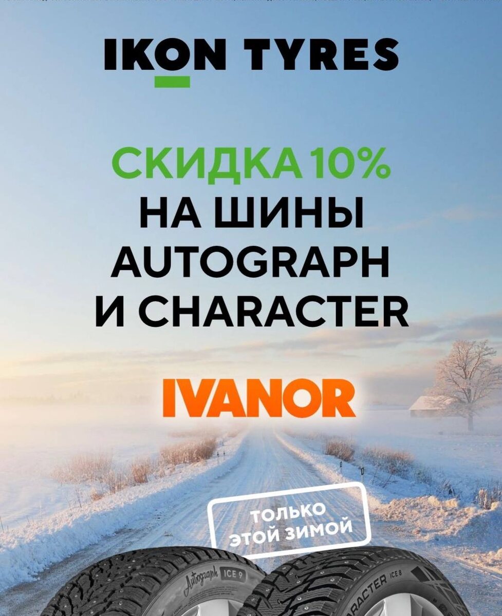Только до 09.12 скидка 10% на зимние шины IKON TYRES Autograph и Character в IVANOR.