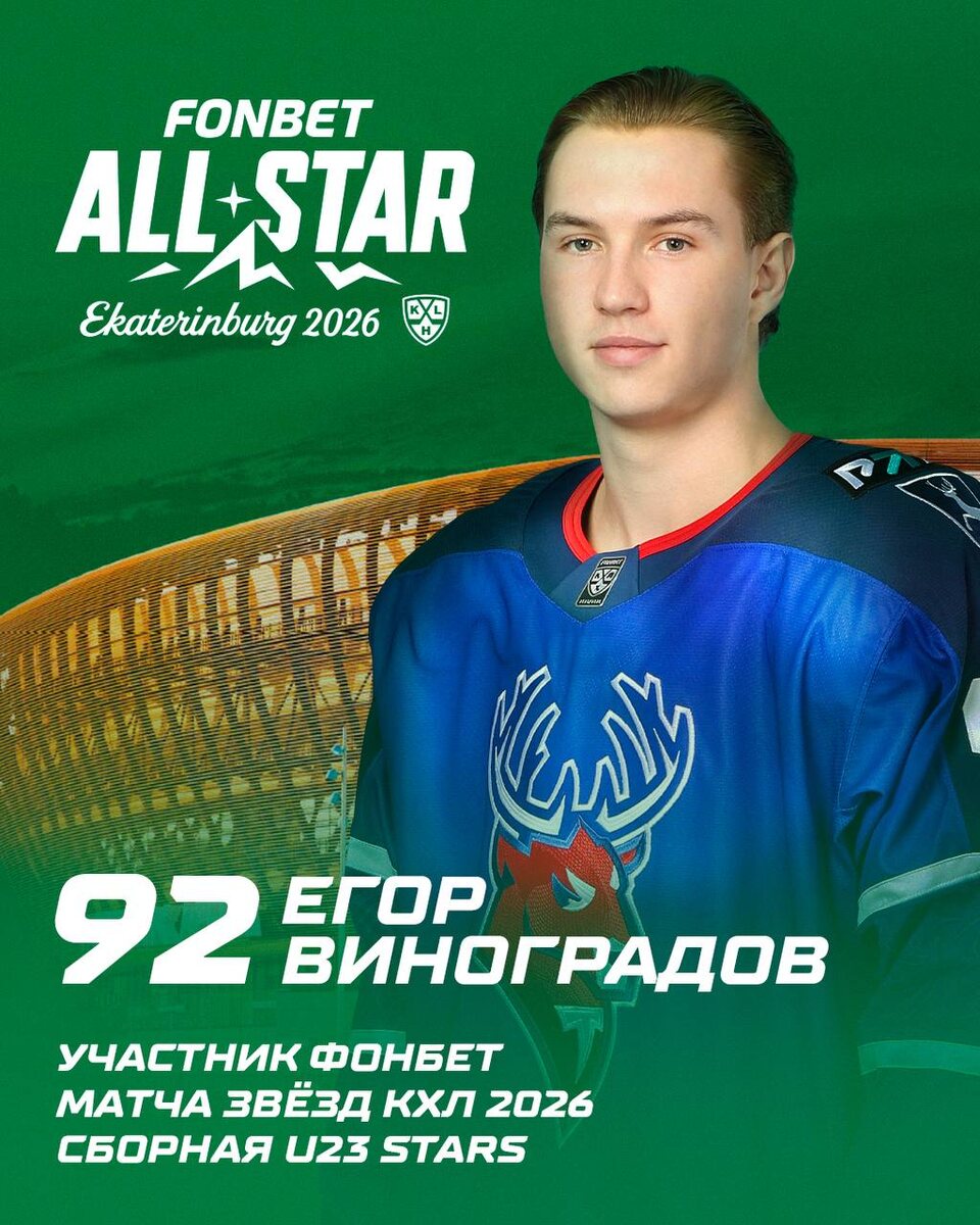 Нападающий «Торпедо» 🦌 Егор Виноградов выбран представителями СМИ для участия в Матче Звезд КХЛ 2026! Егор присоединяется к нашему защитнику Антону Силаеву, который ранее был выбран болельщиками в состав KHL U23 Stars. Звездный уикенд пройдет 7–8 февраля в Екатеринбурге, и наш клуб на нем представят сразу два игрока. 💬 Егор Виноградов о вызове: «Вызов на Матч Звезд стал для меня очень приятным и почетным сюрпризом. Такие события мотивируют и заставляют работать еще лучше и усерднее, чтобы достойно представить родной город и клуб на таком мероприятии. Спасибо партнерам по команде, ведь этот вызов, как и любые другие успехи, возможны только благодаря совместным усилиям!»