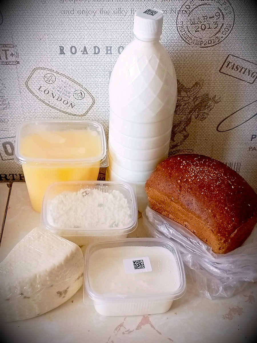 По пути домой, возвращаясь из соседнего Нижневартовска, мы заехали на фермерское хозяйство — место, куда часто заглядываем по дороге. Здесь всегда можно найти свежие и очень вкусные продукты собственного производства. На этот раз мы приобрели два литра пастеризованного молока — по одному для меня и для Андрюши, цена за каждый — 140 рублей. Также взяли бородинский хлеб за 60 рублей и пшеничный — для Андрюши, за 45 рублей. Масло топленое весом 436 грамм обошлось в 872 рубля, творожная масса с изюмом — 160 рублей, а сметана 15% жирности (200 грамм) — 170 рублей. Пакет обошёлся в 5 рублей. Кроме того, купили домашний смешанный фарш за 702,80 рублей и куриный фарш за 601,20 рублей. В итоге сумма составила 2896 рублей. Ещё не удержались и взяли кусочек сыра «КАЧОТТА» весом 316 грамм за 568,80 рублей. Продукты здесь действительно очень вкусные и качественные. Андрюша свое молоко и хлеб сразу забрал домой. На ферме представлен большой ассортимент: разные виды колбас, солёное и копчёно