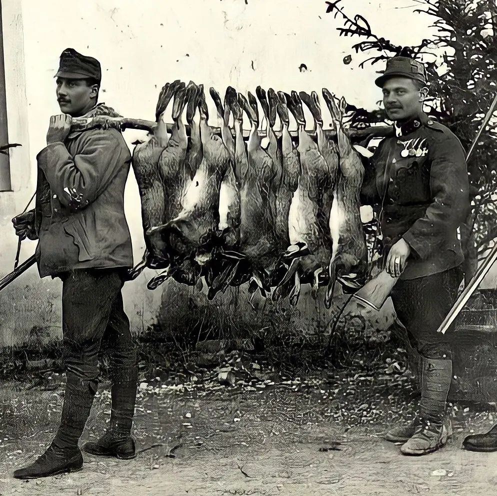 Австро-венгерские солдаты возвращаются с охоты с зайцами, 5 декабря 1917 года.