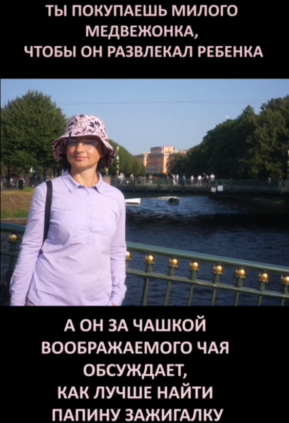 Ты покупаешь милого медвежонка, чтобы он развлекал ребенка, а он за чашкой воображаемого чая обсуждает, как лучше найти папину зажигалку.