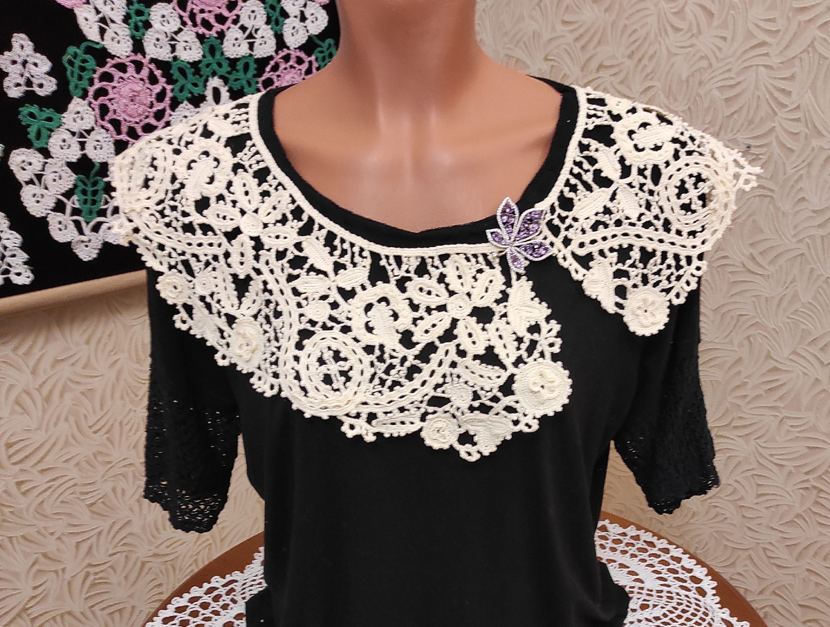 #crochet, #вязаниеКрючком, #кружевноеВязание Далее мы продолжали работать с воротником, я связала технологическую модель двух повторов воротника без одной сетки, вязание сетки показала на занятии. Не думайте, что нитки останутся торчать: они оставлены пока, чтобы можно было посмотреть начало и конец элемента или сетки.