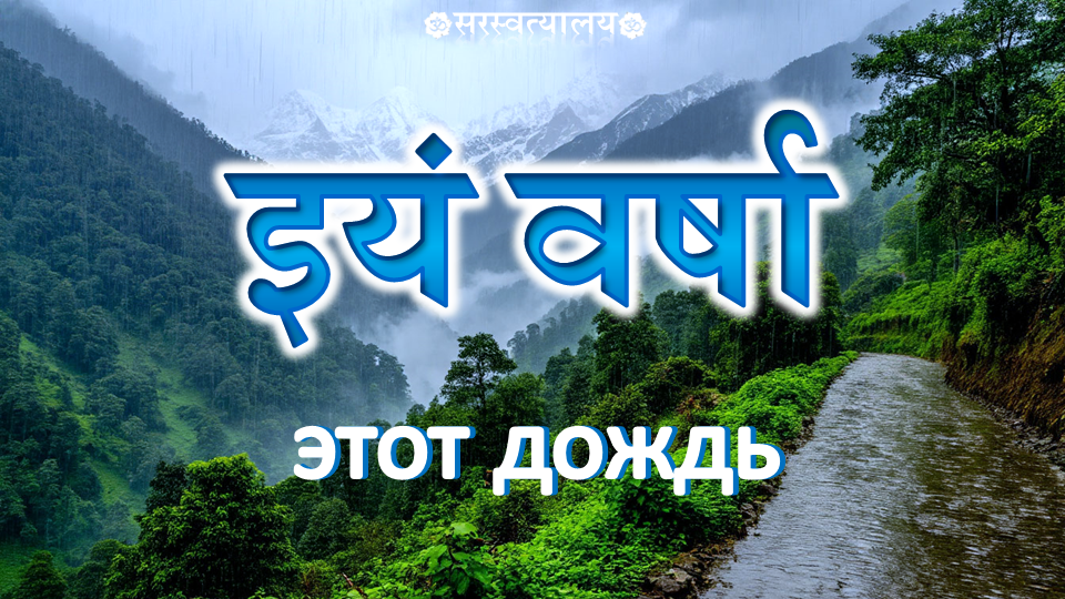 Местоимения इयम्, इमे, इमाः используются для указания на людей и объекты, обозначаемые существительными женского рода, в зависимости от их числа. Род существительных в русском языке и санскрите не всегда совпадает. इयम् (единственное число) эта इमे (двойственное число) эти две इमाः (множественное число) эти Единственное число 1. इयं वर्षा иям варША этот дождь 2. इयं सखी иям сак(х)И эта подруга 3. इयं रज्जुः иям раджджю(ху) эта верёвка Двойственное число 1. इमे वर्षे име варШэ эти два дождя 2. इमे सख्यौ име сак(х)ьяу эти две подруги 3. इमे रज्जू име раджджЮ эти две верёвки Множественное число 1. इमाः वर्षाः имА(ха) варША(ха) эти дожди 2. इमाः सख्यः имА(ха) сак(х)ья(ха) эти подруги 3. इमाः रज्जवः имА(ха) раджджява(ха) эти верёвки Курсы санскрита для начинающих Письменность и произношение Существительные трёх родов Двойственное и множественное число Глаголы и предложения