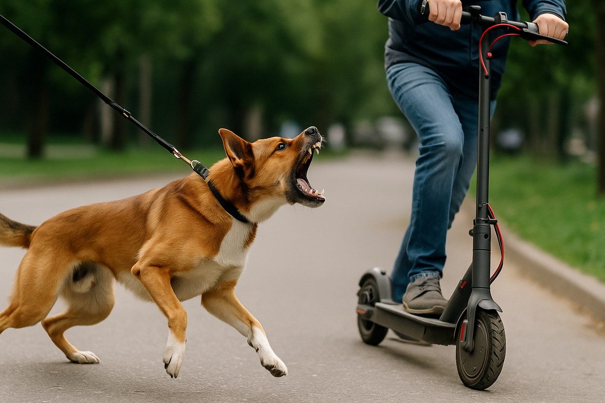 Самокаты могут вильнуть, остановиться рядом, проехать по краю тротуара в сантиметрах. У собаки это вызывает перевозбуждение: мозг не успевает обрабатывать, тело уже делает.
