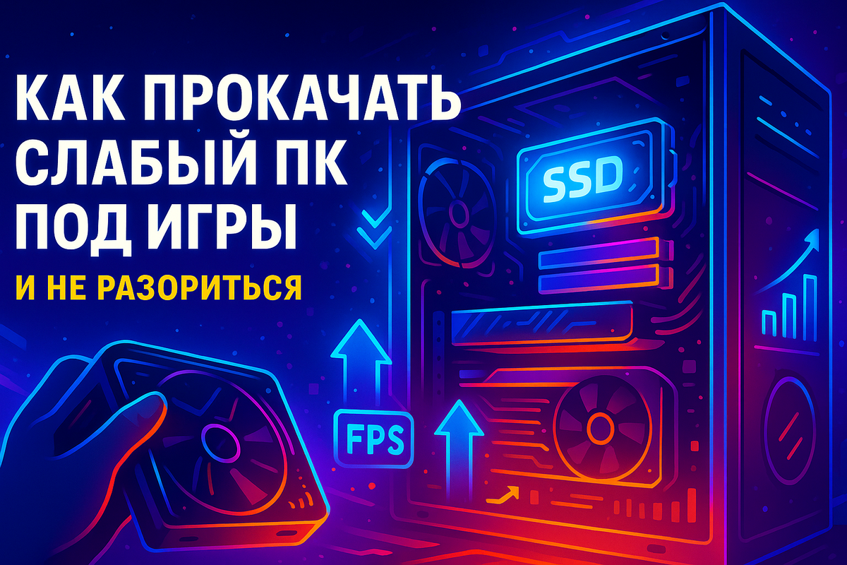 Как прокачать слабый ПК под игры и не разориться Базовые советы, которые реально дают +FPS, а не головную боль Не каждый может позволить себе мощный игровой компьютер. Но хорошая новость — даже слабый ПК можно ощутимо «подтянуть», и часто это стоит дешевле одной современной игры. Главное — знать, что действительно работает, а что не даёт почти ничего. Вот короткий, честный и понятный гид для тех, кто хочет играть комфортно, не углубляясь в сложную техническую теорию. ✔️ 1. Поставьте SSD — это дает эффект сразу Если у вас до сих пор стоит HDD, то переход на SSD — это самая важная и самая эффективная модернизация для слабого ПК. Что меняется: игры запускаются в 3–5 раз быстрее, пропадают микрофризы при подгрузке ресурсов, Windows начинает работать плавно. Даже дешёвый SATA SSD творит чудеса. ✔️ 2. Увеличьте оперативную память до 16 ГБ Сегодня 16 ГБ — комфортный минимум для большинства игр, браузеров и Windows 10/11. Что даст апгрейд: игры перестанут «перегружать» память, исчезнут подла