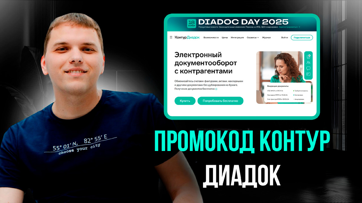 Всем привет! В этой статье раскрою тему: Промокод контур диадок. Покупка контур диадок промокод! Мы являемся официальными партнерами Диадок. Ниже представлен скриншот нашего личного кабинета в Контур Диадок. Создать карусель Промокод контур диадок Сразу переходим к промокоду Контур Диадок. Расскажу как применить и какие бонусы будут. 1) Бонусы: 25 исходящих документов на 30 дней бесплатно. Сответственно вы сможете 25 дней бесплатно отправлять и принимать документы. 2) Промокод: это ссылка https://kontur.ru/diadoc?p=w35383 3) Как применить промокод: Переходим по ссылке и попадаем на официальный сайт Диадока. Здесь мы жмем «Попробовать бесплатно» и проходим регистрацию, так сказать, просто заполняем все поля. Редактировать карусель Доступно 3 варианта — физическое лицо, ИП и ЮР-лицо, то есть выбираем каждое для себя и заполняем поля, жмем продолжить. После этого вы попадете, так сказать, в личный кабинет Диадока, сможете там работать. Создать карусель Как только вы зайдете в личный каби