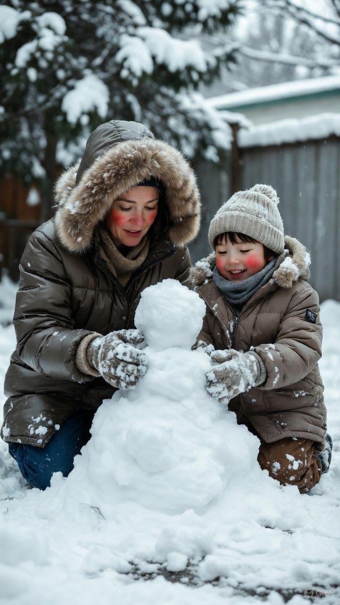 Однажды вечером, в конце декабря, пошёл снег. Первый настоящий, пушистый. Мы с Артёмом вышли во двор лепить снеговика. Он был в старой куртке, которая уже мала, но новую мы пока не купили. Я в мамином пуховике девяностых годов, который нашла в шкафу.