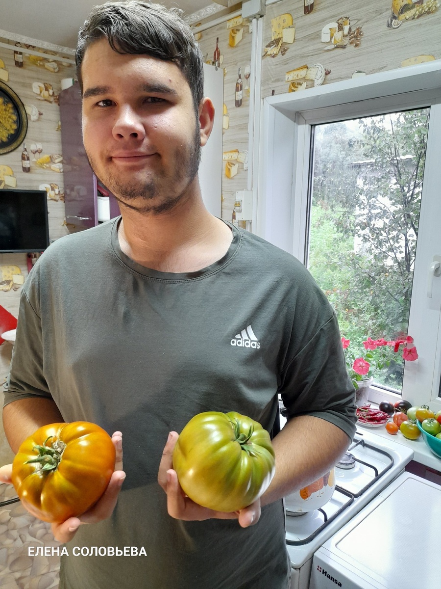 ❤ЛЮБИМЫЕ СОРТА❤ Томат Ruby Surprise/Рубиновый сюрприз Это тот сорт который с первого сезона выращивания попал в категорию ЛЮБИМЫЕ СОРТА😃 Несколько лет подряд этот томат у меня по весу самый большой, чемпион😎 Почему он в категории любимые сорта? -Очень урожайный, у меня с куста более 5 кг спелых помидор -Огромного размера плоды -Томат биф, мякоть и консистенция просто восторг, вкус на 5+ ☺Индетерминантный, высотой 1,8-2 метра с лишним, в рассадном периоде всех перерастает, нужно это учитывать. В кисти у меня по 3-5 плодов со средней массой 300-500 грамм, но очень много плодов более 500 грамм 💪 Форма у помидорок плоскоокруглая с пышными плечиками. Цвет у помидорок шоколадно красный, кирпичный, мякоть малиново, бордово, шоколадная, коричневая😅 На фото у меня цвет не очень, я когда фотографировала, думала что он поспел, но пару штук я оставила на семена и не смогла их вовремя собрать, так вот, спустя неделю помидорки стали насыщенно вишнево-рубинового цвета, у меня не хватает сло