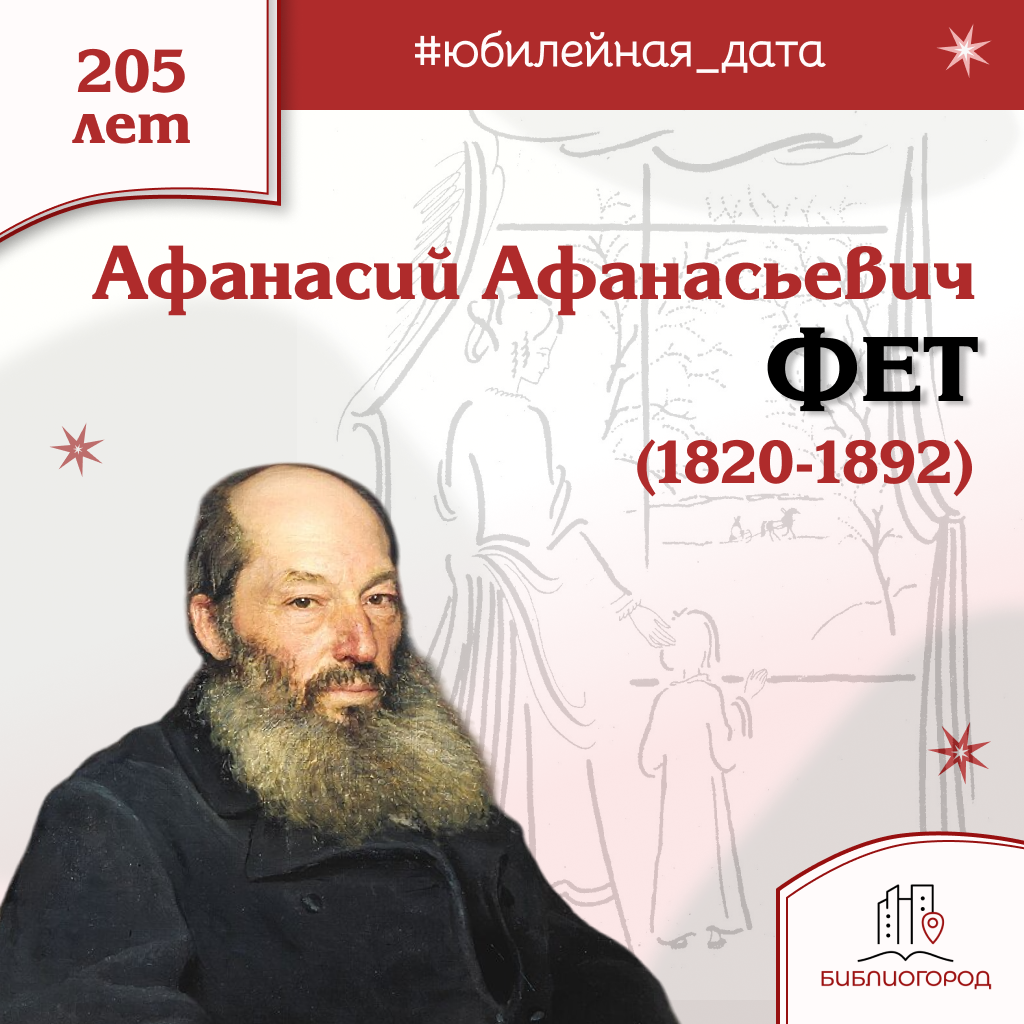 205 лет назад, 5 декабря 1820 года, родился ФЕТ Афанасий Афанасьевич – русский поэт-лирик, переводчик, мемуарист.