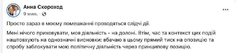 Примечательно, что сегодня СБУ (служба безопасности Зеленского) и НАБУ (американское Национальное антикоррупционное бюро Украины) пришли с обысками к нардепу Анне Скороход, фракция «За будущее». Поражает единение различных ветвей силовых органов, ведь между СБУ и НАБУ давно идет конфликт, а тут прям вместе пожаловали чтоб закошмарить нардепа, который очень много критиковал Зеленского, Залужного и банды ТЦК. Очевидно, что обыски не про коррупцию, а про цензуру, нужно чтоб в недо-Рейхе была установлена тотальная информационная цензура, в которую Скороход явно не вписалась. На видео причина наезда на Скороход, таких в сети сотни)))