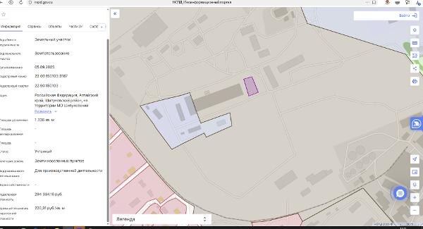 Название: Земельный участок из земель населенных пунктов с кадастровым номером 22:60:150103:3187, площадью 1336 кв.м., расположенного по адресу: Российская Федерация, Алтайский край, Шипуновский район, на территории МО Шипуновский сельсовет, разрешенное использование - для производственной деятельности. Канал: Госземля Алтайский край Область: край Алтайский Район: м.р-н Шипуновский Населенный пункт: с.п. Шипуновский сельсовет Локация: Смотреть на карте ВРИ: Производственная деятельность Кадастровый номер: 22:60:150103:3187 Кадастровая стоимость: - Вид сделки: Аренда Площадь: 1336 м² Начальная цена: 78000.00 руб. Дата завершения: 18.12.2025 Подробнее: ГИС ТОРГИ #госземля #земляотгосударства #земля #земельныйучасток #земельныеторги #торги #аукцион #арендаземли #аренда #алтайскийкрай