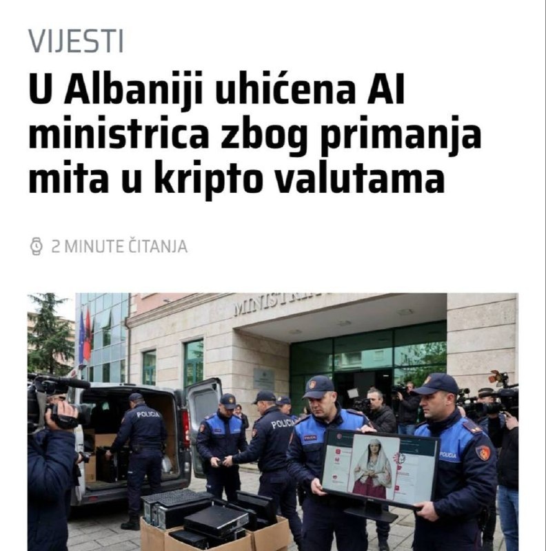 Албанскую первую в мире ИИ-чиновницу Диэллу арестовали по подозрению в том, что она принимала криптовалютные взятки в обмен на «оптимизацию