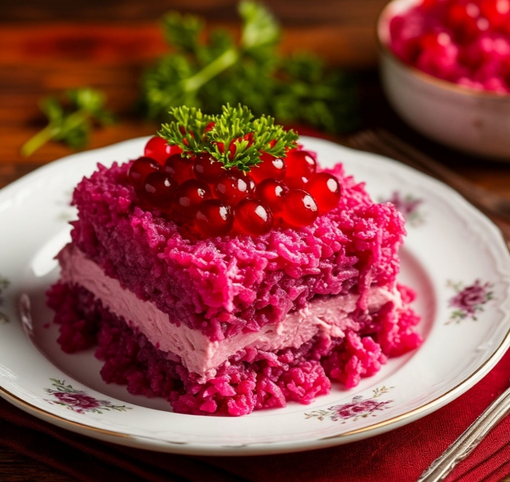 «Селёдка под шубой» — не просто салат, а целая гастрономическая история, знакомая каждому с детства. Сочетание солёной рыбы, нежных овощей и пикантного майонеза превращает обычный ужин в праздник вкуса. В этом рецепте мы раскроем маленькие секреты, которые помогут создать идеальные слои, сохранить сочность и достичь гармонии вкусов, чтобы каждый кусочек радовал глаз и желудок. Готовьтесь удивлять родных и друзей, ведь этот салат способен сделать любое застолье по-настоящему особенным. 🐟 СЕЛЁДКА ПОД ШУБОЙ — НОВАЯ ВЕРСИЯ ⭐ Что изменено: овощи запекаются, а не варятся — вкус ярче лёгкая сливочно-горчичная заправка вместо тяжёлого майонеза добавлен слой свежего яблока — даёт сочность селёдка маринуется в ароматной смеси (3 минуты — эффект шикарный) 🧂 Ингредиенты (на 6 порций) Для салата: Селёдка малосольная — 1 крупная Картофель — 3 шт Морковь — 2 шт Свёкла — 2 шт Лук красный — 1 шт Яблоко (кисло-сладкое) — 1 шт Яйца — 3 шт Для маринада селёдки: Лимонный сок — 1 ст. л. Оливковое масл