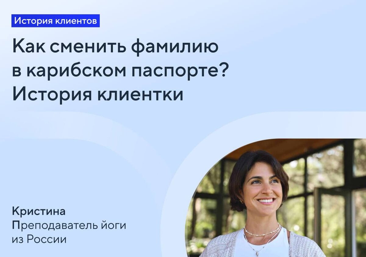 Кристина получила паспорт Сент-Китс и Невис за инвестиции вместе с бывшим мужем. После развода начала обновлять документы и озадачилась: что произойдет с ее вторым гражданством и можно ли в документах вернуть девичью фамилию? За ответами Кристина пришла к юристам Паспортивити. «Юристы сразу успокоили: паспорт сохранится. Но обновить фамилию действительно надо — она должна быть такой же, как и в моем российском документе. Как это сделать самостоятельно, я не знаю. Поэтому поручила процесс юристам» — рассказывает Кристина. Если данные в паспортах будут отличаться, могут возникнуть трудности, например, при продлении документов и открытии банковских счетов. Юристы помогли заполнить государственные формы и подать документы. Кристина оплатила все необходимые сборы, связанные со сменой фамилии. ⏳ Срок: 2 недели 💰 Расходы: 1390 $ Подробности расставания с фамилией и начала новой жизни читайте в кейсе ❤️🩹 #Карибы #ВторойПаспорт #ГражданствоЗаИнвестиции #ВтороеГражданство #Иммиграционн
