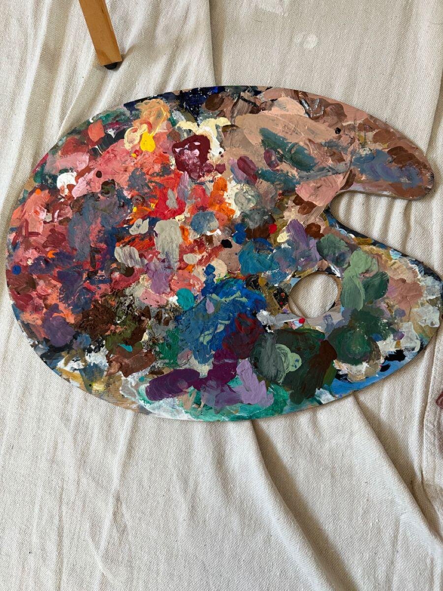 Многие думают, что творческий процесс это всегда хаос на палитре. Но аккуратная палитра это не занудство, а забота о цвете. Когда цвета разложены от тёплых к холодным, от светлых к темным, гораздо легче быстро находить нужный оттенок и не превращать все в серо-коричневую кашу. Можно воспринимать палитру как маленькую картину: чтобы и она была красивой. Попробуйте один сеанс порисовать внимательнее: вытирать кисть между замесами и не мешать все в одном месте. Очень часто уже это делает работу более чистой и уверенной