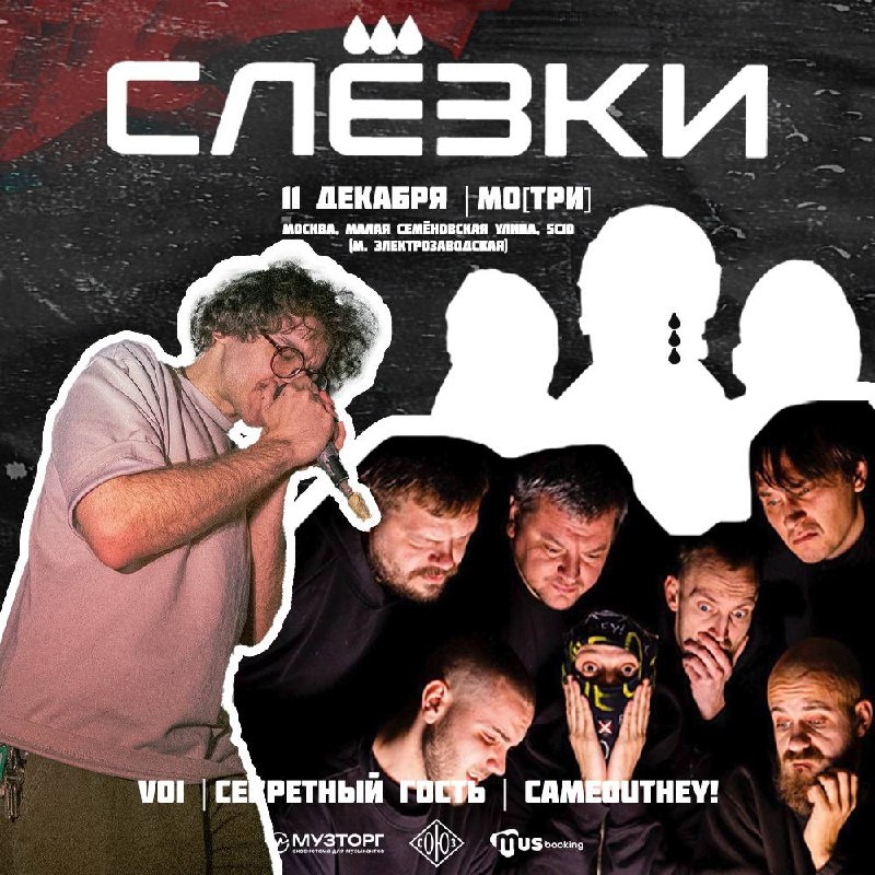 Вторые СЛЁЗКИ 🔥 На новой концертной вечеринке выступят: 🔴VOI 🔴CAMEOUTHEY! 🔴Секретный артист 🕖 11 декабря 19:00 📍 Бар МО[ТРИ] Вход свободный! 📌 Если вы хотите принять участие на следующих вечеринках в качестве артиста — оставляйте заявку по ссылке: vk.cc/cQzd6l