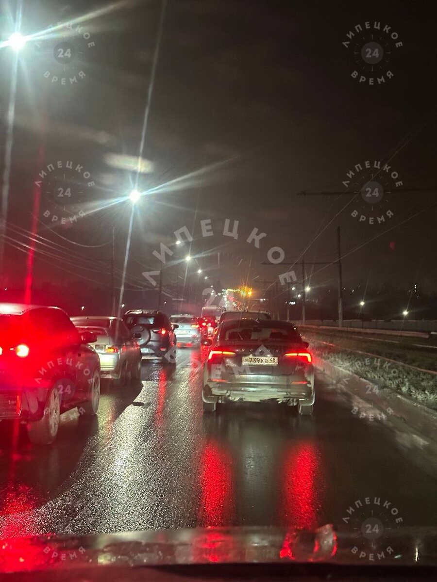📍На Октябрьском мосту в Липецке образовалась крупная пробка: транспорт движется со скоростью не более 5 км/ч
