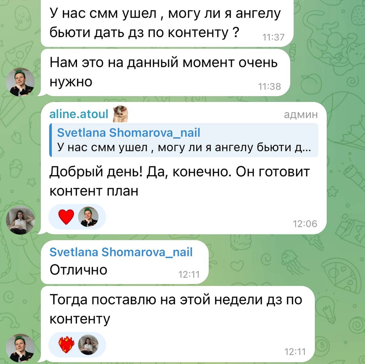 🎬 Бьюти-реалити: как проходит путь Светланы Шомаровой от точки А к точке Б вместе с Ангел Интеллект На этой неделе Светлана закрывает дыры в контенте благодаря личным цифровым Ангелам-помощникам. Вы только посмотрите, как подробно Ангел Интеллект прописал контент-план для салона участницы. А самое главное — быстро и четко, без задержек и головной боли директора. Круто же?🔥