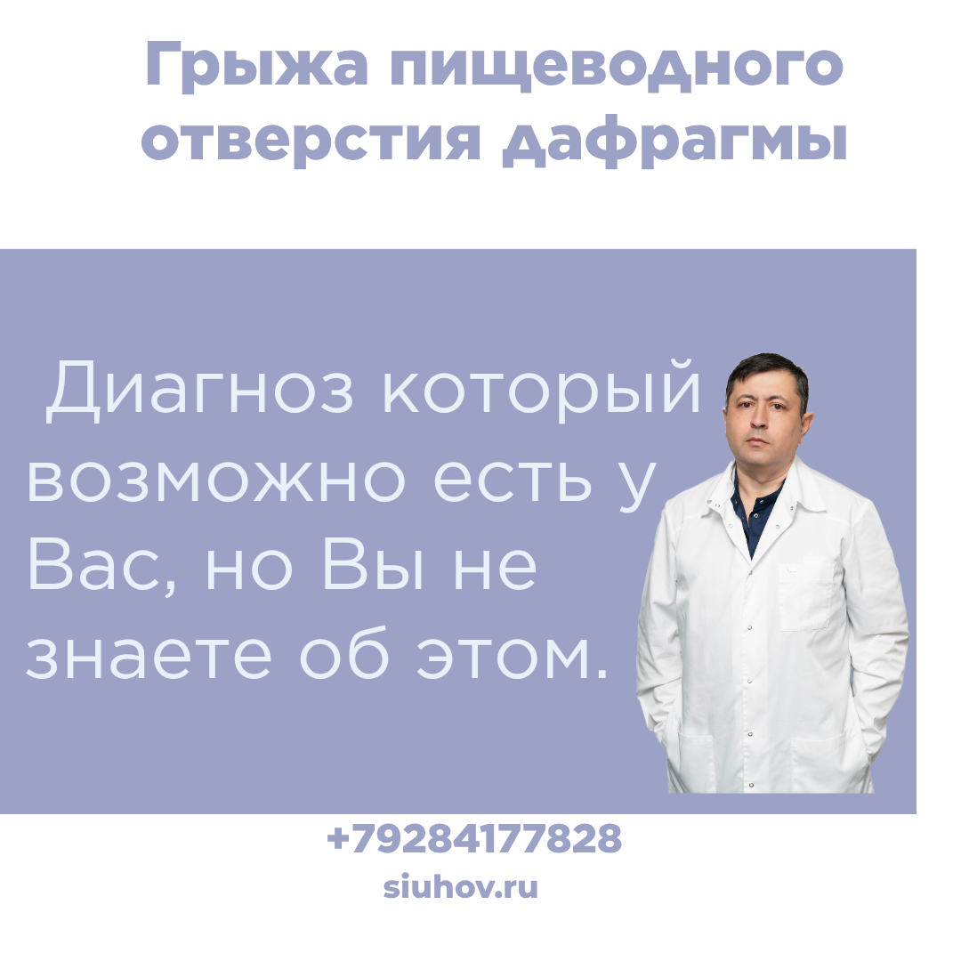 Грыжа пищеводного отверстия диафрагмы — это состояние, при котором часть желудка или другие брюшные органы смещаются в грудную полость через естественное отверстие диафрагмы (пищеводное отверстие), по которому проходит пищевод. Выделяют несколько типов: скользящая (тип I) — самая распространённая; параэзофагеальная (тип II), комбинированные и редкие типы (III–IV). При скользящей ГПОД гастро-пищеводное соединение и часть желудка перемещаются вверх и часто возвращаются на место; при параэзофагеальной часть желудка пролабирует и может фиксироваться в грудной полости, что повышает риск осложнений.