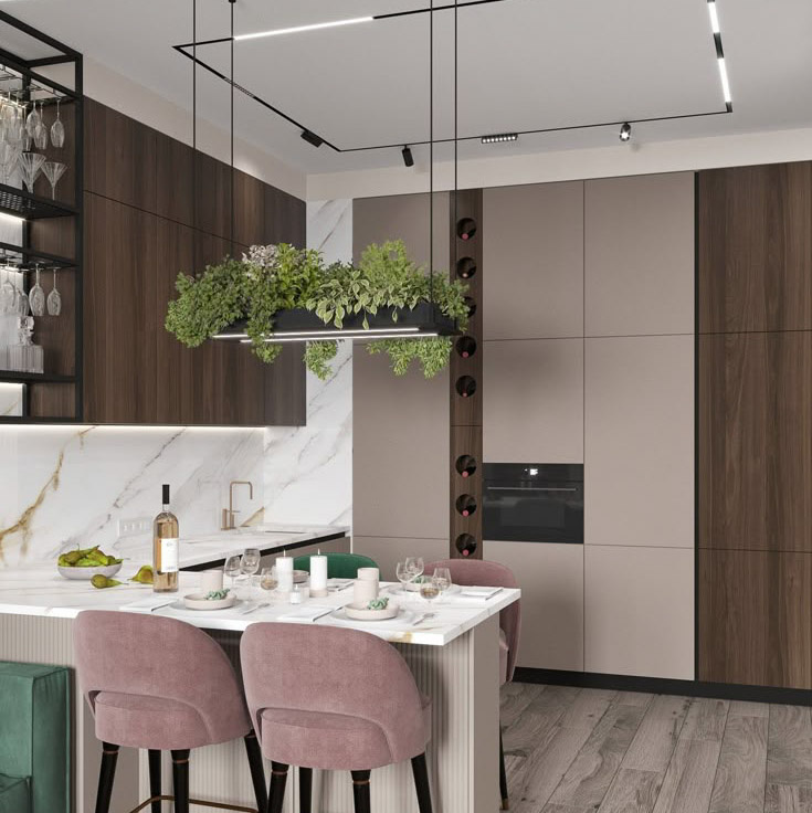 Вообще-то пунктов должно быть гораздо больше. Потому что система освещения очень сильно влияет на атмосферу, комфорт и удобство, а планируют её почему-то часто по остаточному принципу. Давайте для начала разберём самые популярные промахи, чтобы кухня не превратилась в пещеру или солярий. 1. Одна люстра на всю кухню. Самая частая ошибка — повесить одну люстру посреди потолка и считать, что этого достаточно. Ну это классика жанра, генетическая память, наверное, работает. А это как пытаться осветить футбольное поле одной свечкой. В итоге рабочая зона в тени, а обеденный стол похож на сцену театра. Разделите освещение на зоны. Над столом — подвесные светильники или люстра, над рабочей поверхностью — LED-лента или точечные светильники. И это самый минимум. 2. Слишком яркие или тусклые лампы. Либо вы слепнете от яркости, как от прожектора, либо ищете продукты наощупь. Не зря же дизайнеров учат рассчитывать необходимую яркость всех источников света. Используйте лампы разной мощности. Для ра