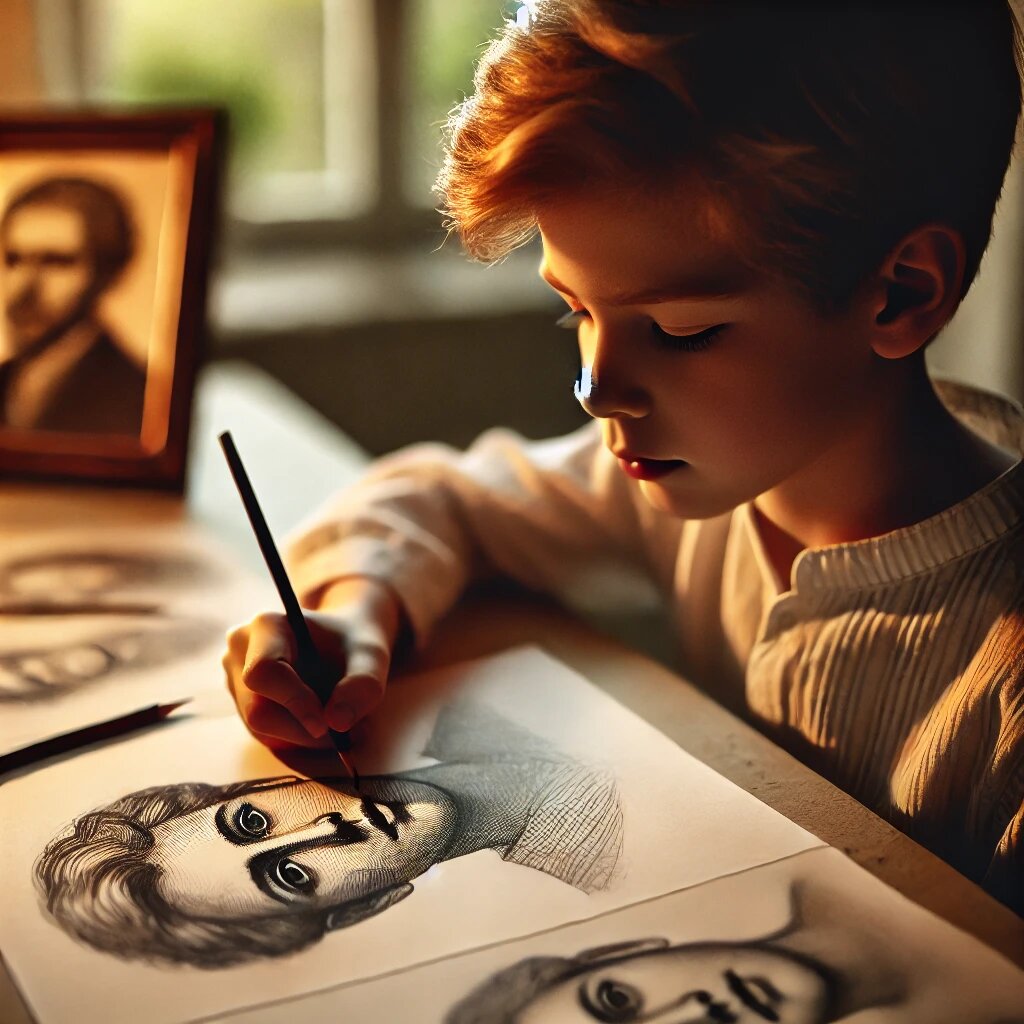 Но в тот день, когда всё началось, я была обычной учительницей рисования, измученной проверкой этюдов и запахом гуаши, который въелся в одежду сильнее мела в руках математика. Я помню то утро как сейчас. Мы сидели в нашей подвальной студии — холодной, с облупившейся штукатуркой, но любимой детьми. Слышался тихий скрип мольбертов, шуршание карандашей. Я обходила ребят, поправляла линии, подсказывала, как строить форму. И вдруг остановилась. Серёжа сидел ко мне боком. Тихий мальчик, замкнутый, но с руками, в которых будто жила жизнь другого человека. Он рисовал портрет. Слишком взрослый, слишком реалистичный — мужчина с тяжёлым взглядом, шрамом над бровью, изломом губ, который трудно придумать. — Ты кого рисуешь? — спросила я, стараясь, чтобы голос звучал мягко. Он даже не поднял головы: