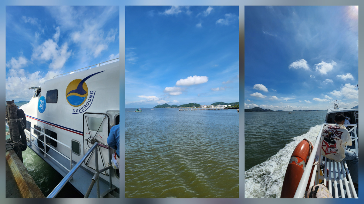 Из Marina Phu Quoc я выехала к порту, на этот раз я брала билет в Superdong и за час с небольшим доплыла до Хатьена. Паром комфортный, внутри кондиционер, наверху можно выйти подышать ветром и попрощаться с островом.