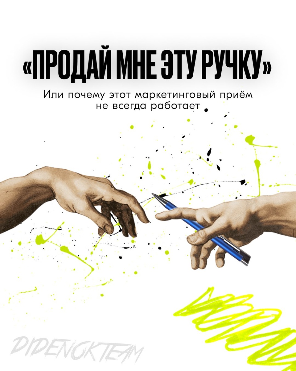 «Продай мне эту ручку»... не работает? Возможно вы сталкивались с таким запросом на собеседованиях (нам жаль...) или видели эту ситуацию в кино. Фраза эффектная, но есть один нюанс: если человеку не нужна ручка, он её не купит. Пусть даже у неё золотые чернила 😰 Суть проста: люди с помощью покупки закрывают свои потребности, а если её нет, — продажа невозможна по определению. Сейчас эти потребности не столько о рациональности, сколько об эмоциях, статусе и ощущении принадлежности. Эмо-маркетинг создаёт связь с брендом и повышает склонность купить, даже когда продукт сам по себе простой 😳 Подсвечивает эти нужды и желания УТП, ведь человек может не замечать какие-то уникальные характеристики. Например: 🔹Не просто ручка, а ручка, которой Елизавета II подписывала все самые важные и секретные документы🔹. Здесь уже речь об истории, причастности. Эмоции может создавать не только ценность и уникальность продукта или услуги, но и то, как часто мелькает продукт в медиа. Это нередко вли