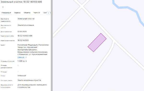 Название: Земельный участок с кадастровым номером 16:32:140103:486, площадью 1496 кв.м., расположенного по адресу: Российская Федерация, Республика Татарстан, Нурлатский муниципальный район, Мамыковское сельское поселение, с Мамыково, ул. Красноармейская, с разрешенным использованием – для индивидуального жилищного строительства Канал: Госземля Республика Татарстан Область: Респ Татарстан Район: м.р-н Нурлатский Населенный пункт: с.п. Мамыковское, с Мамыково, ул Красноармейская Локация: Смотреть на карте ВРИ: Для индивидуального жилищного строительства Кадастровый номер: 16:32:140103:486 Кадастровая стоимость: - Вид сделки: Продажа Площадь: 1496 м² Начальная цена: - руб. Дата завершения: 05.01.2026 Подробнее: ГИС ТОРГИ #госземля #земляотгосударства #земля #земельныйучасток #земельныеторги #торги #аукцион #продажаземли #продажа #республикататарстан