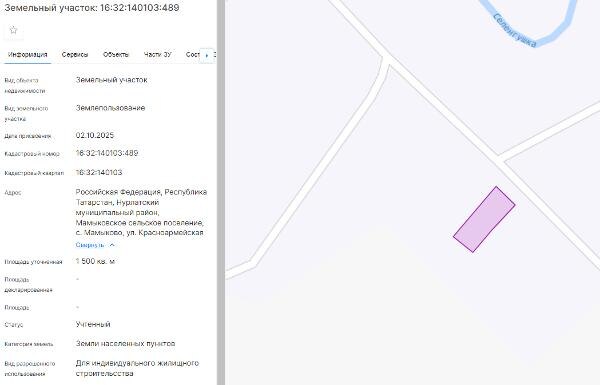 Название: Земельный участок с кадастровым номером 16:32:140103:489, площадью 1500 кв.м., расположенного по адресу: Российская Федерация, Республика Татарстан, Нурлатский муниципальный район, Мамыковское сельское поселение, с. Мамыково, ул. Красноармейская, с разрешенным использованием – для индивидуального жилищного строительства Канал: Госземля Республика Татарстан Область: Респ Татарстан Район: м.р-н Нурлатский Населенный пункт: с.п. Мамыковское, с Мамыково, ул Красноармейская Локация: Смотреть на карте ВРИ: Для индивидуального жилищного строительства Кадастровый номер: 16:32:140103:489 Кадастровая стоимость: - Вид сделки: Продажа Площадь: 1500 м² Начальная цена: - руб. Дата завершения: 05.01.2026 Подробнее: ГИС ТОРГИ #госземля #земляотгосударства #земля #земельныйучасток #земельныеторги #торги #аукцион #продажаземли #продажа #республикататарстан