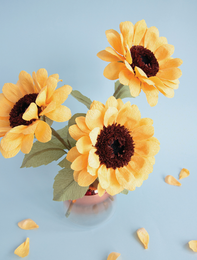 Наш раздел статей по бумажной флористике можно найти здесь. Хотите добавить в интерьер яркий акцент или сделать оригинальный подарок? Попробуйте изготовить объёмный подсолнух своими руками! Эта техника позволяет добиться поразительной реалистичности: пушистая сердцевина и аккуратные лепестки выглядят почти как живые. Рассказываем, как пошагово воплотить идею в жизнь. Что понадобится Креповая бумага (подберите оттенки):