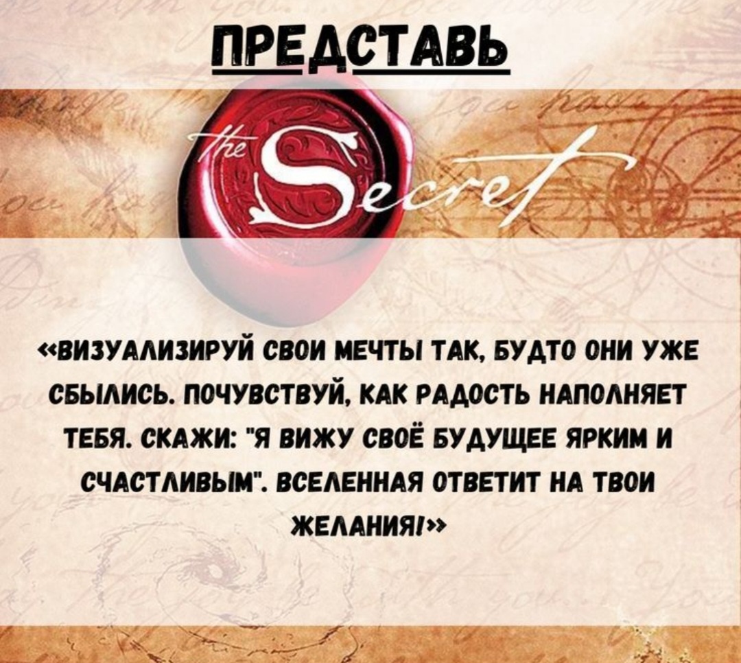 · Будьте тем, кого хотите притянуть. Хотите щедрого партнера — будьте щедры (не деньгами, а душевно). Хотите веселых друзей — будьте источником хорошего настроения. Закон зеркала: мир отражает ваши качества.