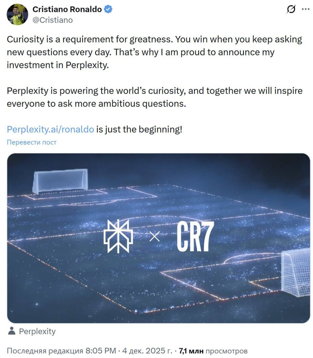 Роналду вложился в Perplexity и уже делает с ними совместный проект