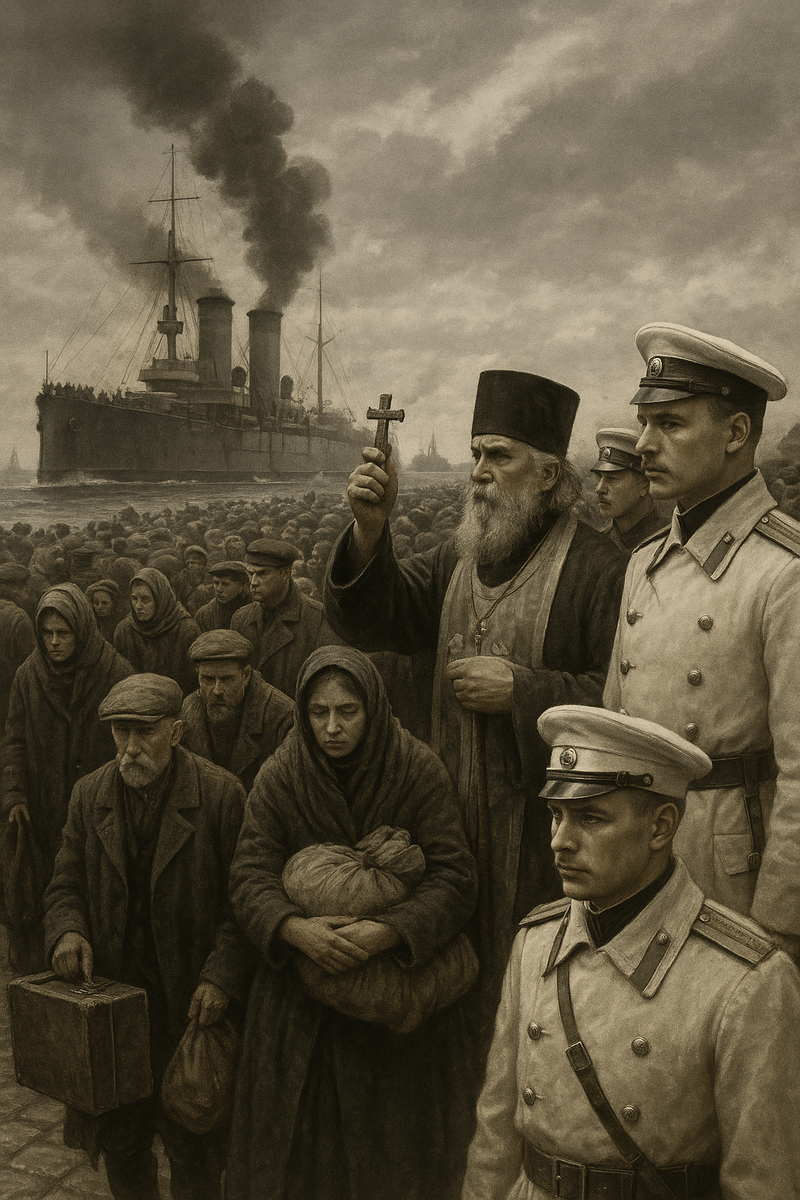Остатки Русской армии и десятки тысяч гражданских (учёные, врачи, семьи