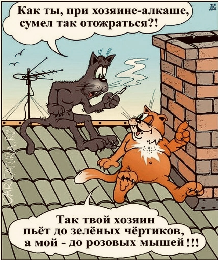 Вот говорят: собака думает, что человек — это бог, потому что он её кормит. А кошка думает, что бог — это она сама, раз человек её кормит. Старая мудрость, затертая до дыр, но вы попробуйте с ней поспорить, глядя в эти наглые желтые глаза в пять утра. Если с собаками у нас дружба и партнерство, то с кошками — чистой воды стокгольмский синдром. Мы добровольно селим у себя дома хищника, который нас презирает, дерет любимое кресло и требует еды с интонацией ресторанного критика. И мы счастливы. Мы умиляемся. Это ли не загадка? Художники, которые рисуют про кошек, кажется, давно поняли главную расстановку сил. Человек на этих картинках — это всегда обслуживающий персонал. Швейцар, открывающий дверь (причем кошка еще подумает, выходить или нет). Официант, накладывающий паштет. Грелка для кошачьего пуза. В карикатурах про кошек почти никогда нет сюжета о послушании. Там всегда сюжет о тирании. Мягкой, пушистой, мурчащей, но абсолютной тирании. Я вот часто наблюдаю, как люди выбирают кота
