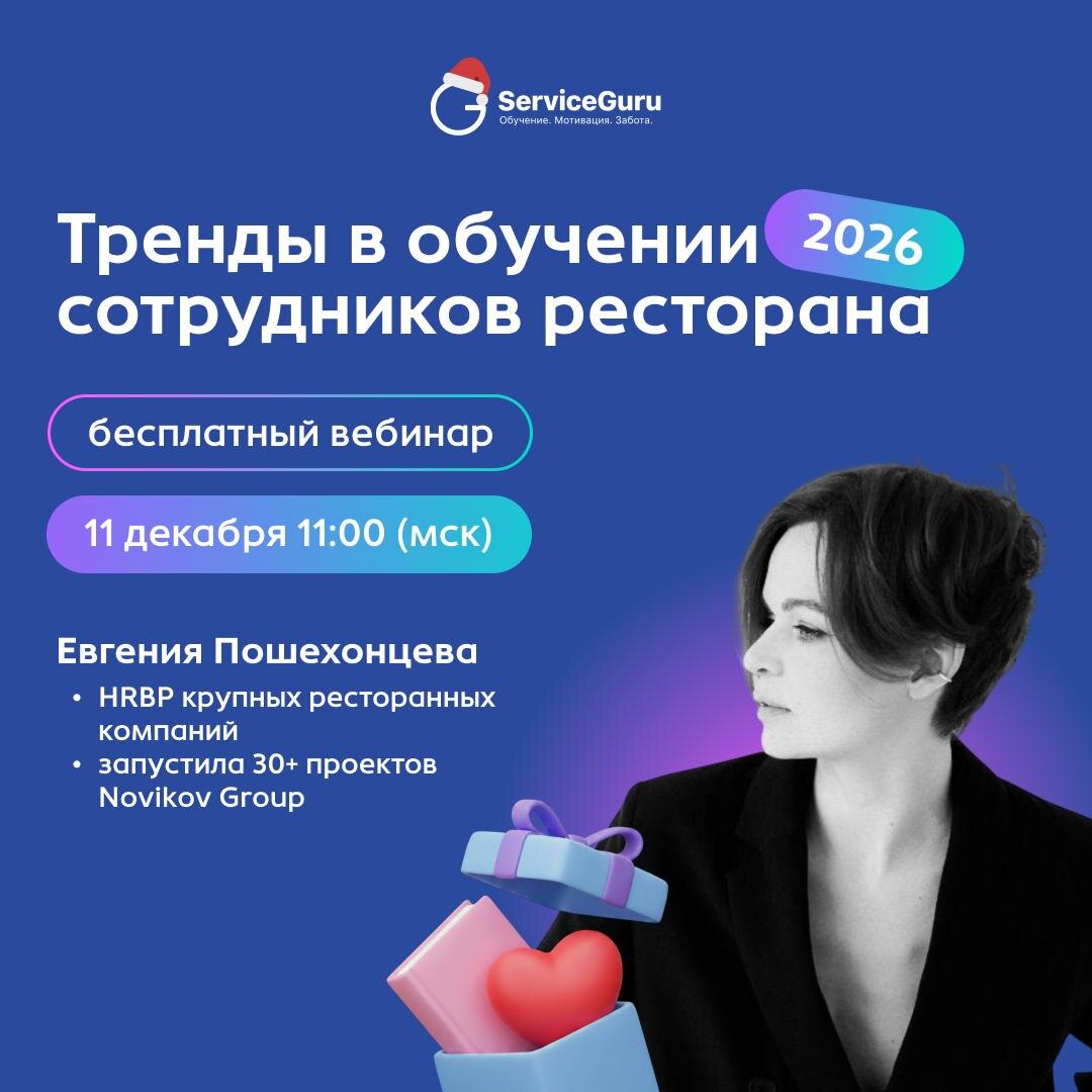 Можно отрицать сколько угодно, но 2026-й начнется в условиях кризиса📈, и потребует от ресторанов нового фокуса в отношении сотрудников. ⚡Наступает время обучения, которое работает на результат, а не просто нравится команде: — быстрее адаптирует, — повышает средний чек и выручку, — растит сервис и лояльность гостей, — снижает текучку и экономит ресурсы. Как построить стратегию эффективного обучения на 2026 год, расскажет Евгения Пошехонцева🎙, HRBP известных ресторанных компаний, запустила сервис и команду в 30+ проектах Novikov Group, 5 лет работала за границей. 🗓Бесплатный вебинар 11 декабря в 11:00 (мск) В прямом эфире разберем: ➡️ Почему мы их “учим-учим, и никак не научим”? Что мешает эффективности обучения, и как перестать тратить ресурсы впустую. ➡️Методы и инструменты, которые останутся в прошлом. ➡️7 столпов обучения, которое реально работает на цели бизнеса. ➡️Личность тренера: мифы и правда о харизме. 📎Регистрируйтесь сейчас и получите в подарок 📄Чек-лист внедрения