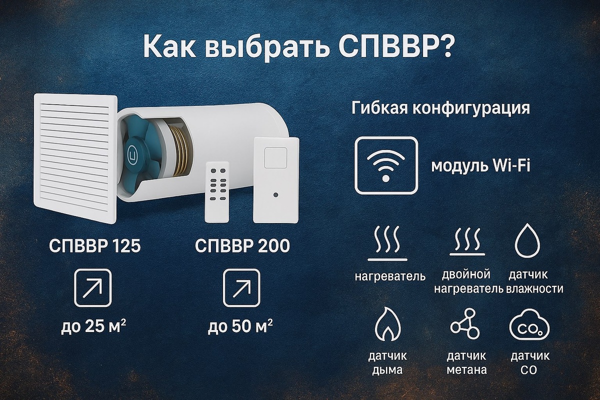 Если вы задумались о покупке рекуператора, то наверняка сталкивались с вопросом — какую модель СПВВР выбрать: 100, 125 или 200? Разбираю коротко и по делу, но так, чтобы вы точно поняли разницу. 🔵 Какие модели бывают? Линейка СПВВР включает три модели: СПВВР 100 Компактная версия для маленьких комнат. Упомянем её вскользь, потому что в 90% случаев покупатели выбирают модели побольше. СПВВР 125 Идеальная модель для квартир и стандартных жилых комнат. Площадь применения: до 25 м². Это золотая середина между производительностью и стоимостью. СПВВР 200 Увеличенная производительность, подходит для помещений до 50 м². Часто выбирают для: — больших гостиных — частных домов — коммерческих помещений — студий — влажных помещений (бассейны, сауны) 🔍 Как выбрать модель под свою квартиру? Правило простое: ✔ До 25 м² — выбираем СПВВР 125 ✔ До 50 м² — подойдёт СПВВР 200 ✔ Маленькие и узкие комнаты для замены клапана КИВ — СПВВР 100 Если сомневаетесь — мы проконсультируем. ⚙ Какие опции можно доба