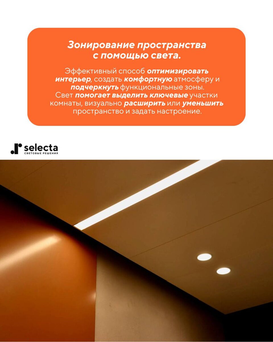 💡Что такое зонирование пространства с помощью света? 👩💻Как выделить функциональные зоны, использовать уровни освещения и цветовую температуру? Рассказываем в нашей новой рубрике #Selecta_Education 💡🤝🫡