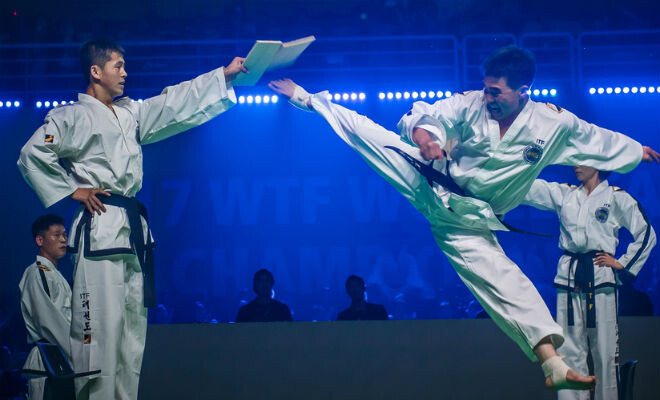 Кроме того, Тхэквондо Чучхе идеально вписывается в эстетику режима: оно зрелищно, динамично, легко транслируется в пропаганду. Массовые демонстрации с участием тысяч детей, выполняющих синхронные удары, прыжки, разбивание льда и кирпичей — это не просто показ физической подготовки. Это театр власти, где тело ребёнка становится живым пикселем в гигантском политическом спектакле. Такие шоу регулярно транслируются по государственному телевидению, экспортируются в дружественные страны и используются на международных форумах как доказательство «духовной и физической мощи корейского социализма».