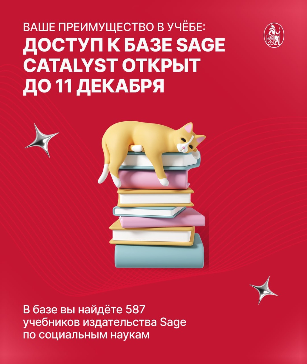 🔔 Знакомьтесь: Sage Catalyst — цифровая библиотека учебников по социальным наукам. Тестовый доступ открыт до 11 декабря. Успейте им воспользоваться! ✔ Вас ждёт цифровая коллекция учебников издательства Sage. В базе — 587 наименований на английском языке по темам: • Бизнес и менеджмент • Психология • Социология • Право • Политические науки • …и другие дисциплины, которые будут полезны как для учёбы, так и просто для прокачки себя Преимущества Sage Catalyst: 📕 Актуальные материалы на английском 🔍 Удобный поиск по ISBN, заглавию, автору или издательству ❤️ Можно добавлять книги в «Любимое» и вести свою цифровую полку 🌐 Доступ онлайн — учиться можно откуда угодно Как подключиться? 1. Перейдите по ссылке 2. Установите расширение ProxyLibrary SPBSU (инструкция) Технические детали: Формат: HTML | Язык: английский | Доступ: до 11.12.2025 💫 Проведите выходные продуктивно и с пользой — успейте найти свою настольную книгу на этой платформе!