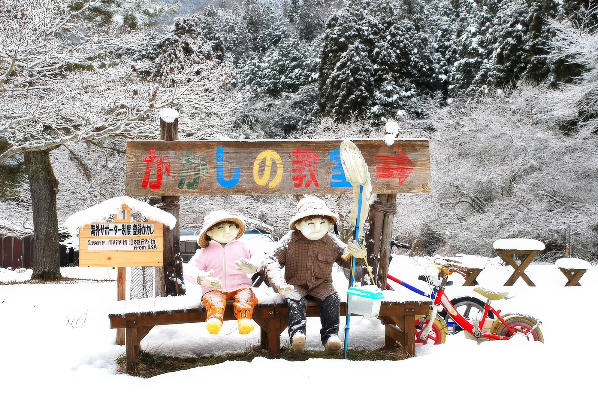 В префектуре Токусима, глубоко в горах Сикоку, скрывается место, которое одновременно пугает и завораживает: деревня Окухарима. Когда-то здесь жило около сотни человек, но время и миграция сделали своё — сейчас в деревне остаются лишь единицы. А остальное пространство заполняют… куклы. Полноразмерные, человеческого роста, созданные руками местного жителя Масато Окауэ. Мы приехали сюда ближе к вечеру — именно в это время деревня выглядит так, словно ты оказался в японском хорроре: густой лес, тишина, горы вокруг и «жители», застывшие на тропинках, возле домов и прямо на полях. Масато делает кукол по образу тех, кто когда-то жил в Окухариме, чтобы сохранить память о месте, которое постепенно исчезает с карты. Вдохновила его художница Аяно Цукуми, создавшая в таком же стиле «кукольных жителей» для почти опустевшей деревни Нагоро. Настоящих людей здесь почти не встретишь. Сегодня нам повезло — мы наткнулись на местного жителя, который живёт здесь только в тёплое время года и показывает